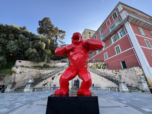 Daardoor mist het wat sfeer en gezelligheid, al zorgen de platanen en palmbomen wel voor wat schaduw. Aangenaam op hete zonnige dagen! Vlakbij ligt de veerhaven waar je grote ferry’s naar Frankrijk en Italië ziet varen. Er staan enkele standbeelden, waaronder een beeld van Napoleon in het tenue van een Romeinse keizer. Napoleon werd geboren op Corsica en wordt door veel locals nog steeds aanbeden.